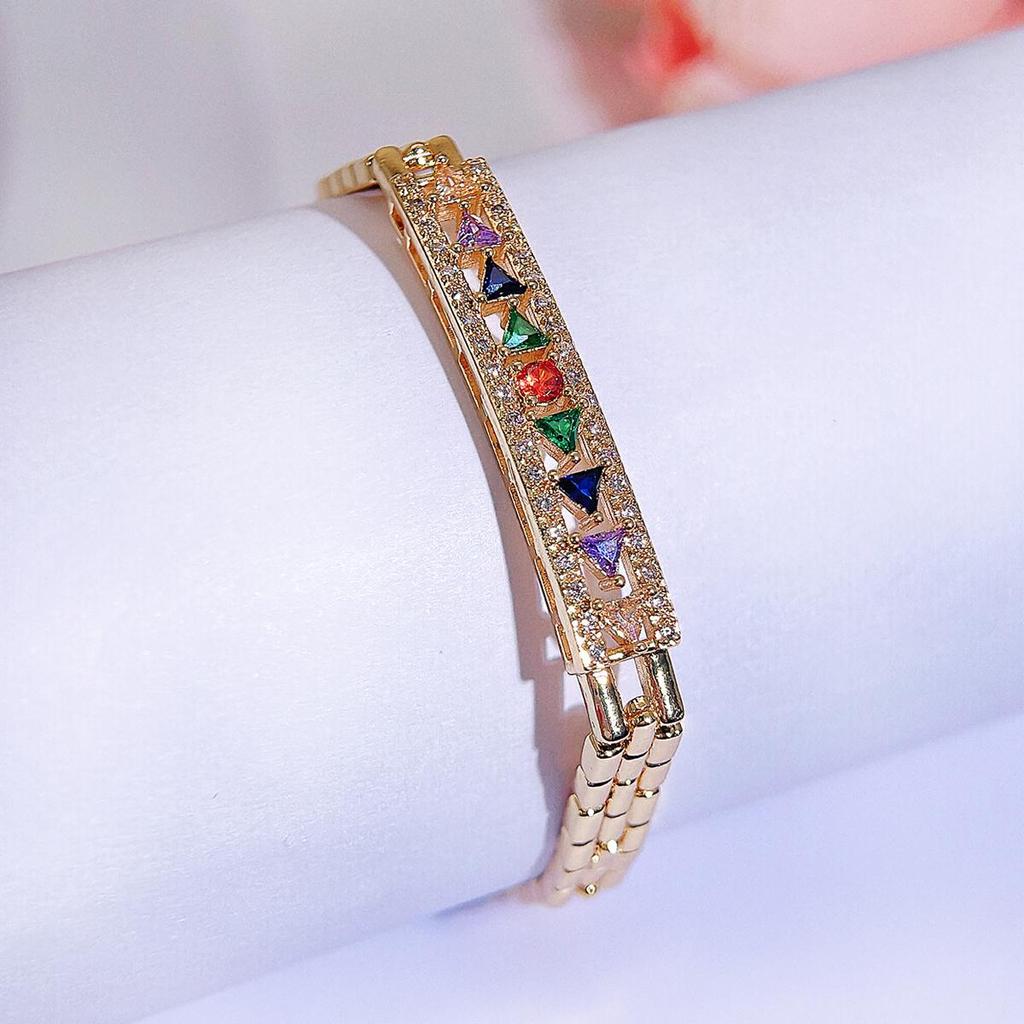CMM Thai Style Retro Light Luxury High-End Color Geometric Zircon Heavy Metal Golden Noble Woman Tennis Bracelet
