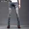 Jeans de moto personnalisés haut de gamme pour hommes européens printemps 2024: Beau style slim à la mode