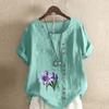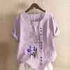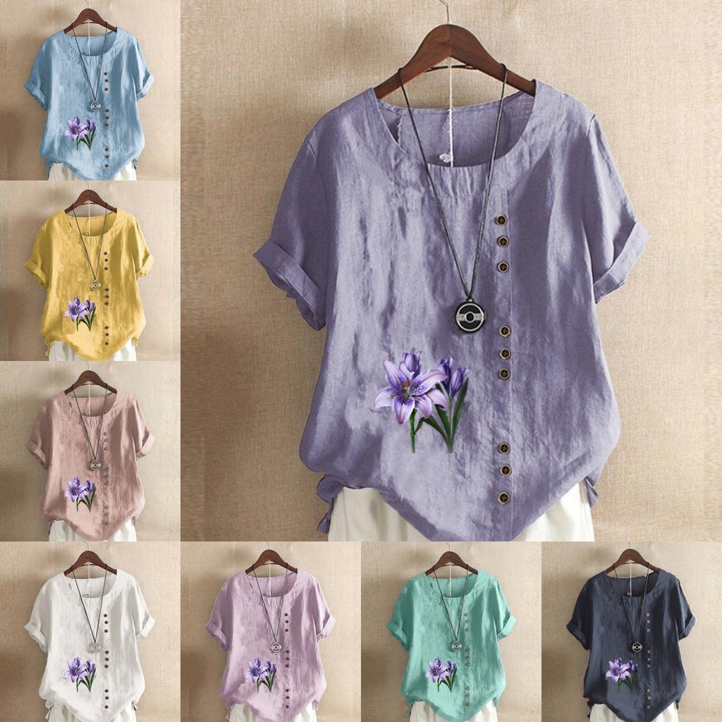 T-shirt à manches courtes imprimé floral pour femme, chemise ample en coton, chemisier d'été décontracté, grande taille