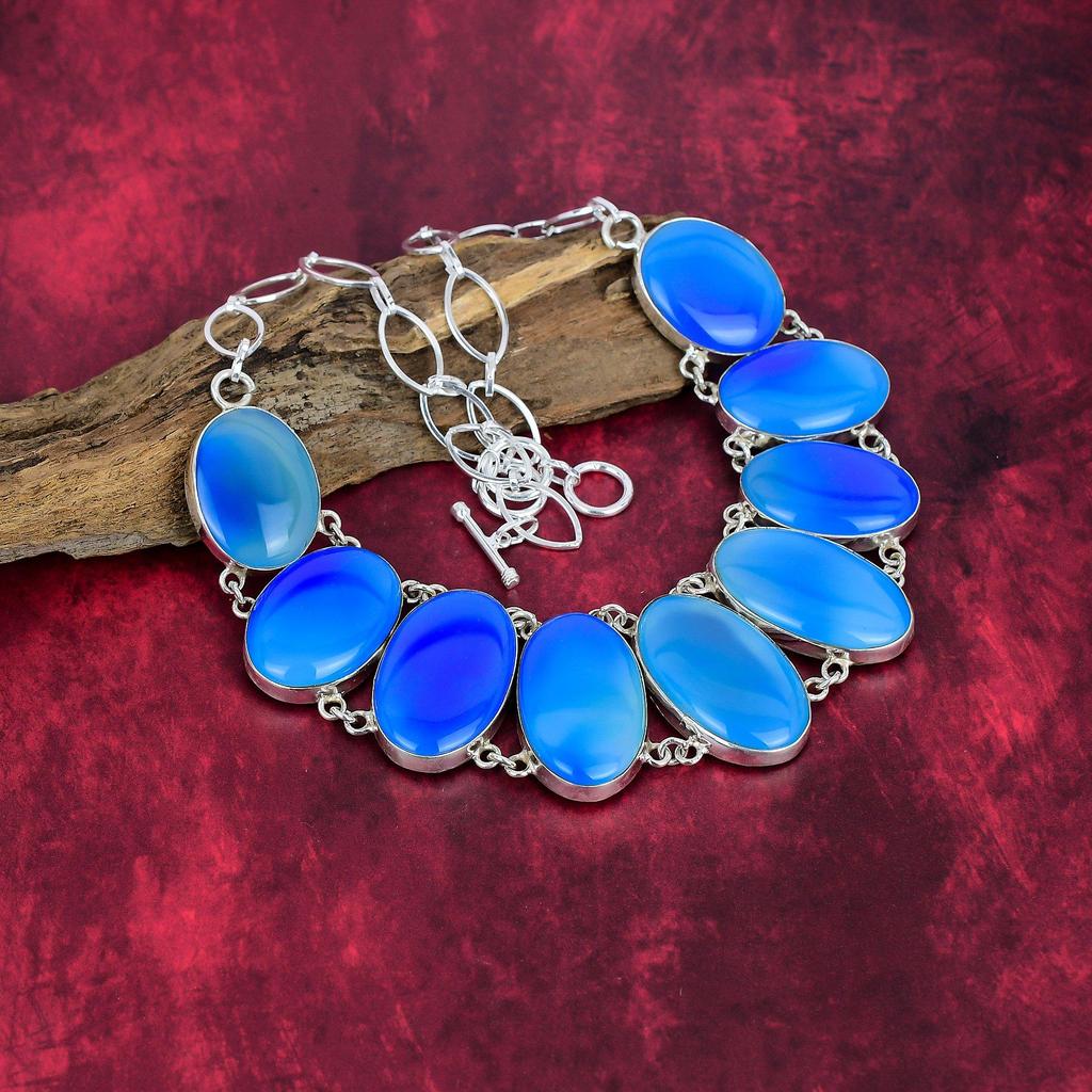 Collier œil de chat bleu, collier en argent sterling massif 925, bijoux, collier de bijoux fait main avec chaîne réglable