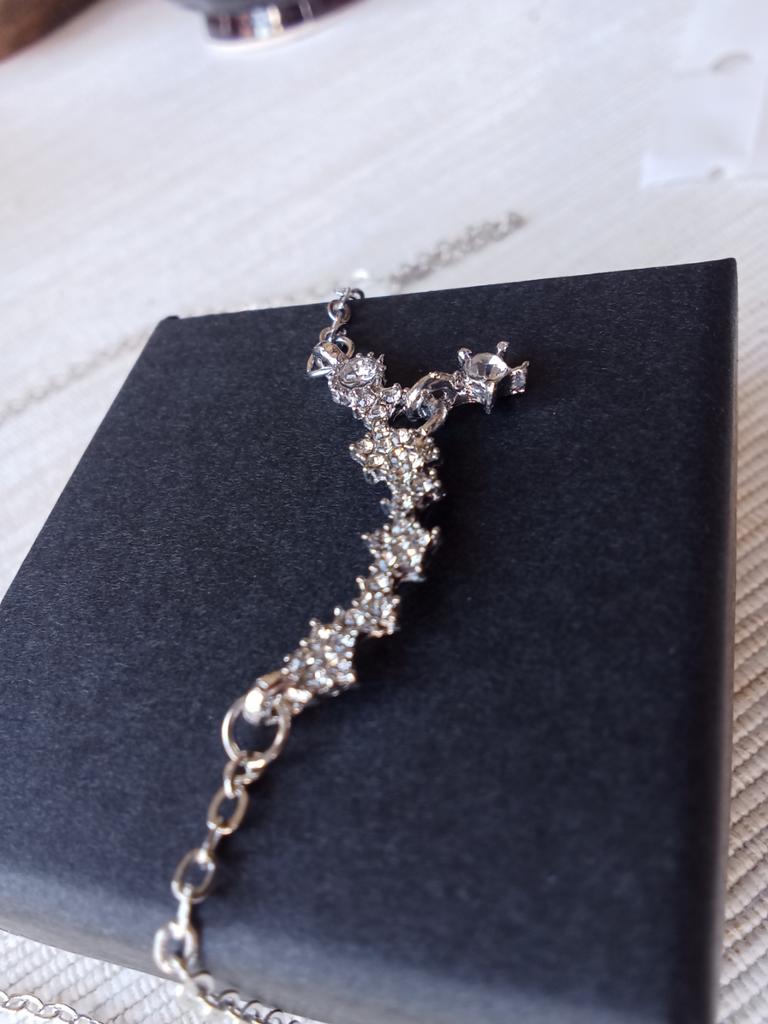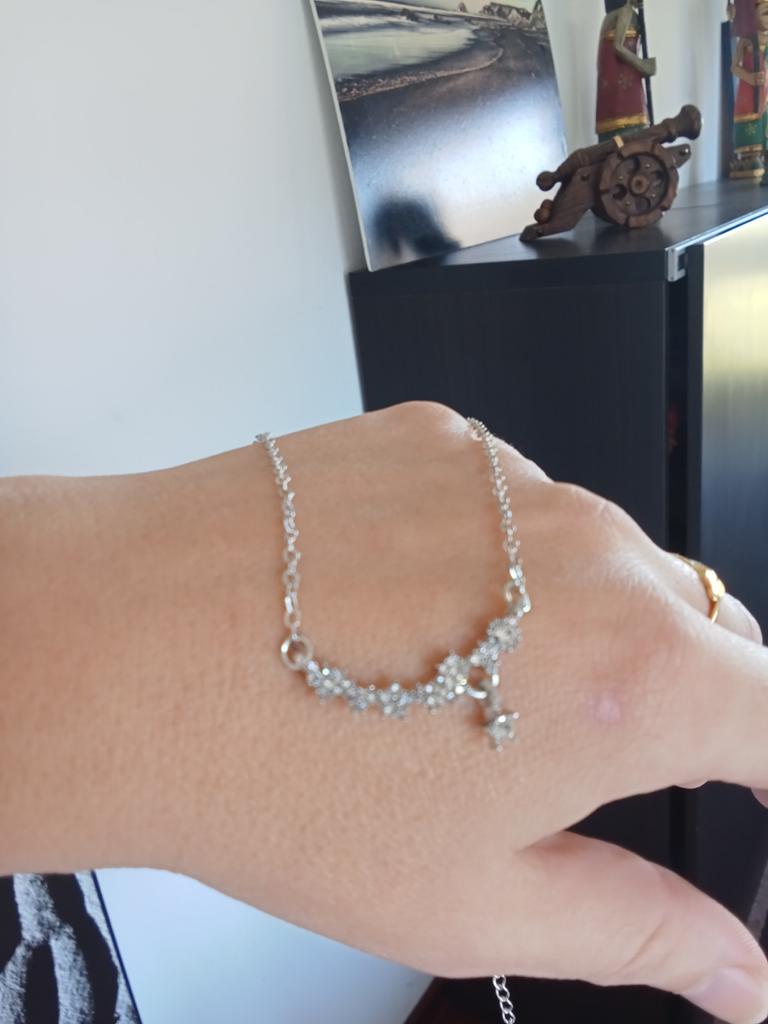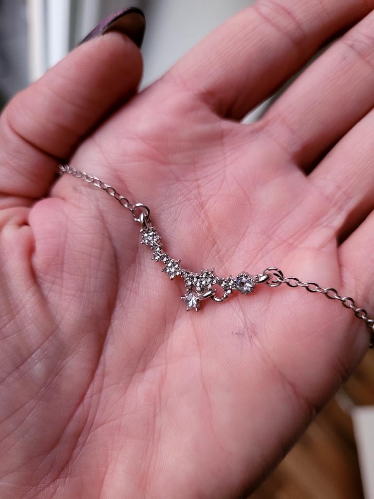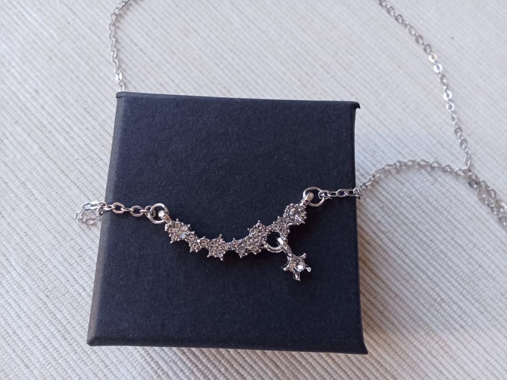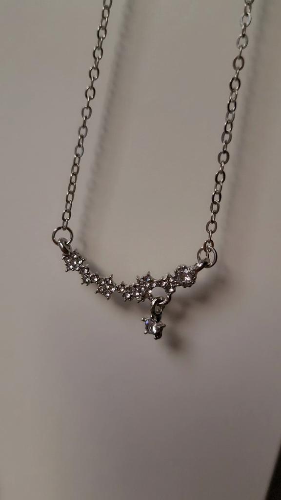 * Collier avec étoiles ✨ * 💥𝗟𝗶𝗲𝗳𝗲𝗿𝘇𝗲𝗶𝘁 Environ 2 semaines 💥𝗟𝗶𝗲𝗳𝗲𝗿𝘂𝗺𝗳𝗮𝗻𝗴 La livraison comprend 1 collier en argent. 💥𝗤𝘂𝗮𝗹𝗶𝘁ä𝘁 Le collier fait une belle impression. Il y a des petites pierres en forme d'étoile sur la chaîne, mais il n'y a pas de décorations au dos. La chaîne peut être resserrée individuellement ou plus large sur le cou... (voir vidéo). Pour la composition des matériaux : On peut dire que la chaîne ne durera pas éternellement, mais pour un joli accessoire de mode pour accompagner une jolie robe de communion, c'est tout à fait correct.. Je pense que la chaîne a été faite d'un simple métal. La remorque est relativement longue et solide. 💥𝗙𝗮𝘇𝗶𝘁 Joli collier qui attire tous les regards sur le décolleté 🦋 Scintille magnifiquement au soleil.