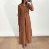 Rehaussez votre style de tous les jours avec ce costume deux pièces chic et polyvalent. Fabriqué à partir d'un mélange de coton et de lin, ce costume est à la fois respirant et confortable, ce qui le rend parfait pour le printemps, l'été et l'automne.. Le design de couleur unie, les revers et les manches longues lui confèrent une touche classique, tandis que le pantalon large décontracté ajoute une touche moderne..