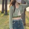 Couverture de Protection Solaire à Col en V et Lacets Découpée pour Femmes en Été Cardigan Tricoté à Manches Longues Fin et Tendance Couche Extérieure Courte