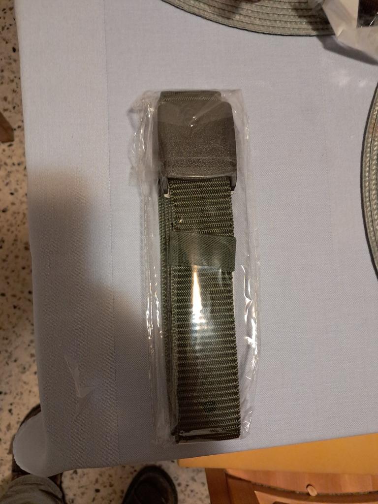 Une ceinture en toile cool et simple avec une boucle en plastique. Facile à mettre et à fixer. Très léger je recommande