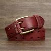 Ceinture large vintage pour homme en cuir de vache véritable, boucle à double aiguille en cuivre, faite à la main, pour jeans, tendance