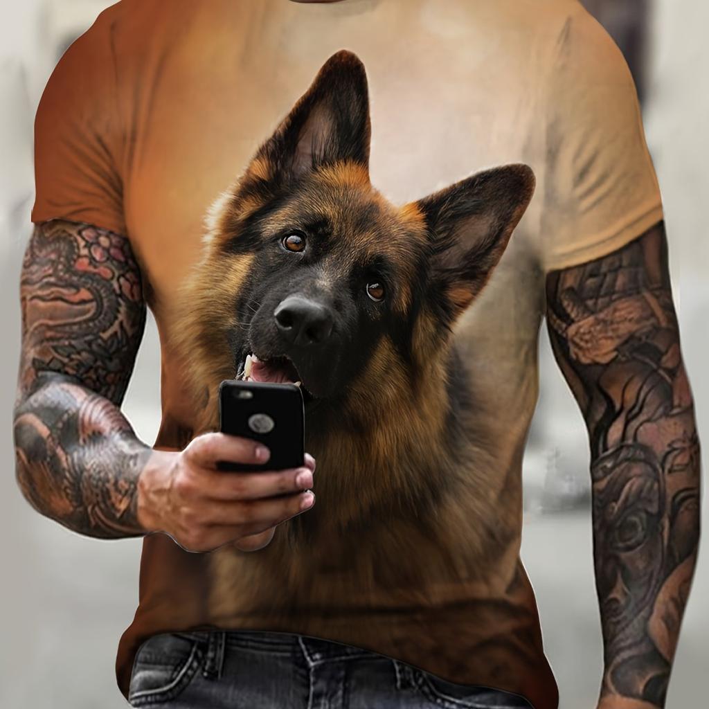T-shirt à manches courtes pour homme, imprimé graphique 3D de chien mignon, grande taille, tendance et décontracté, pour l'été