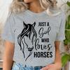 Juste une fille aime les chevaux T-shirt unisexe été Manches courtes Col rond T-shirts Imprimé animal cheval Vêtements pour femme T-shirt haut FeT-shirt unisexe