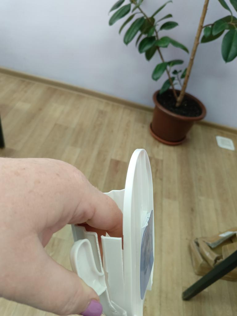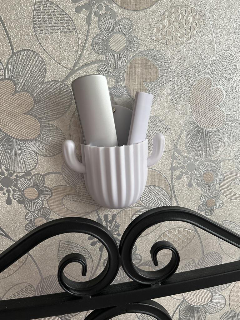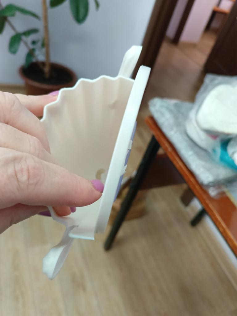 Bon support cactus blanc. Le kit comprend un autocollant transparent pour la fixation au mur. Il n'y a PAS d'odeur plastique désagréable. Il y a un trou en bas pour l'écoulement de l'excès d'eau/d'humidité. Il y a un emplacement en haut pour un trou. Les bords sont bien traités, la couleur est blanche comme sur la photo