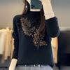 Pull semi-col roulé pour femme automne/hiver, pull ample en strass, haut en tricot doux