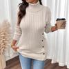 Pull Col Roulé Femme Automne-Hiver avec Boutons Irréguliers