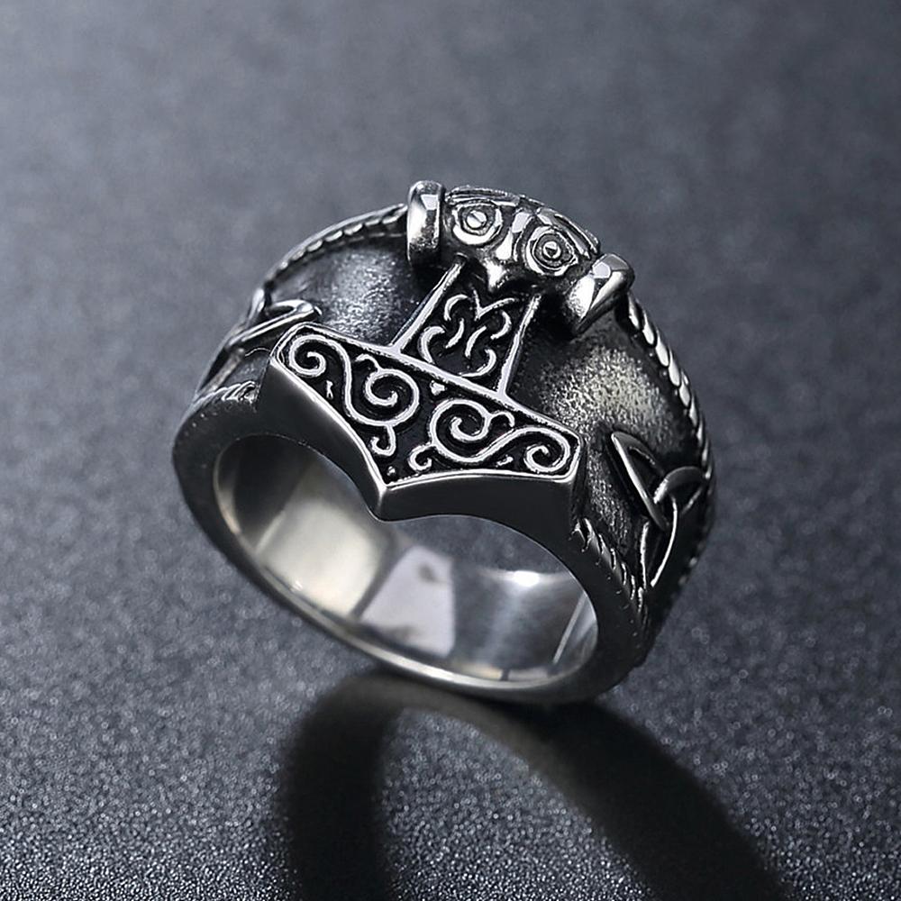 Bague vintage Viking Mjolnir Thor's Hammer pour homme, en acier inoxydable 316l, style nordique, nœud celtique Odin, amulette, bijoux cadeau