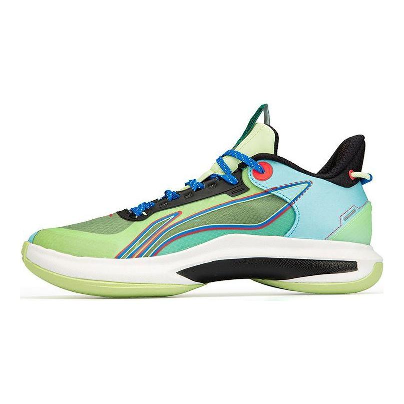 Li Ning Chaussures de Basket Performance Coupe Basse Homme Baskets Vert Bleu ABPR069-7