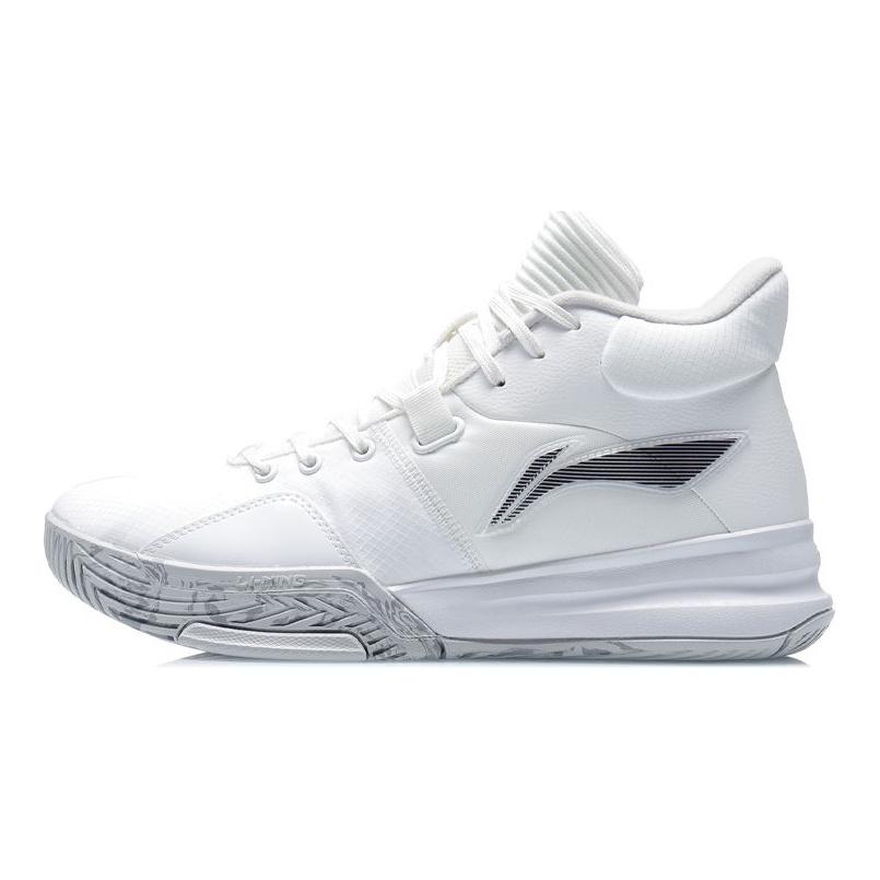 Li-Ning Chaussures de Basketball Mi-Hautes Légères Absorbant les Chocs Antidérapantes Durables Homme Baskets Blanc ABPQ039-5