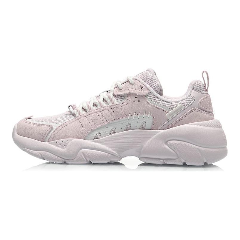 Li Ning Chasing The Moon Chaussures de Sport Décontractées Basse Tige Amortissantes Antidérapantes Durables Femmes Baskets Rose Blanc AGLQ248-2