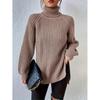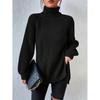 Pull polyvalent en tricot à col roulé et ourlet fendu, pull décontracté à manches longues pour l'automne et l'hiver, vêtements pour femmes