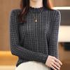 Pull en tricot de laine creuse en dentelle avec col d'oreille en bois pour femme, pull mi-haut, couleur unie, ample, chemise fine, printemps et automne
