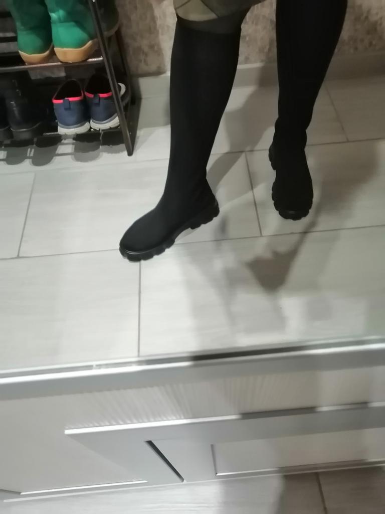 Bottes sympas. Ma pointure est 38. J'ai pris du 40. Ça convient. Confortable au pied. Épouse bien la jambe. Glisse sur les collants en nylon en marchant. Mais si les collants sont chauds, on peut les porter.