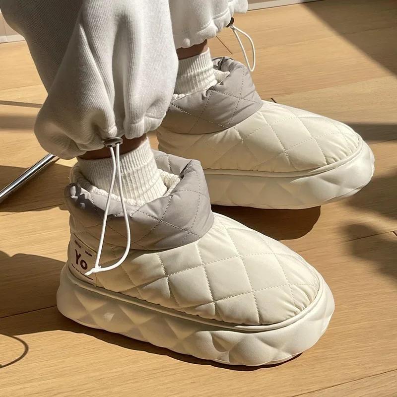 Nouvelles Bottes de Neige d'Hiver pour Femmes Simples Semelle Épaisse Imperméables Chaussures en Coton Duvet Bottes Chaudes Épaissies Chaussures en Coton pour Couple