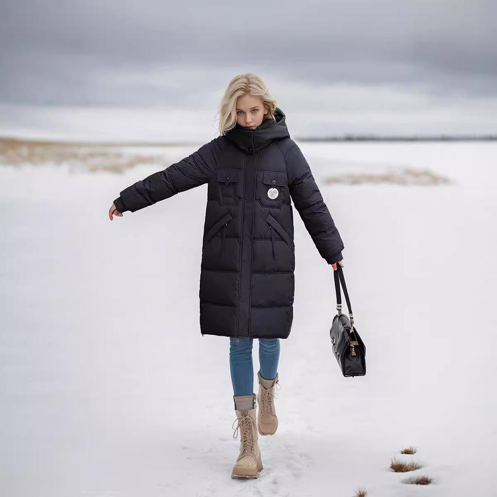 2024 Nouvelle veste demi-saison pour femme Veste longue décontractée à capuche en coton Veste longue d'hiver au-dessus du genou Vêtements pour femmes