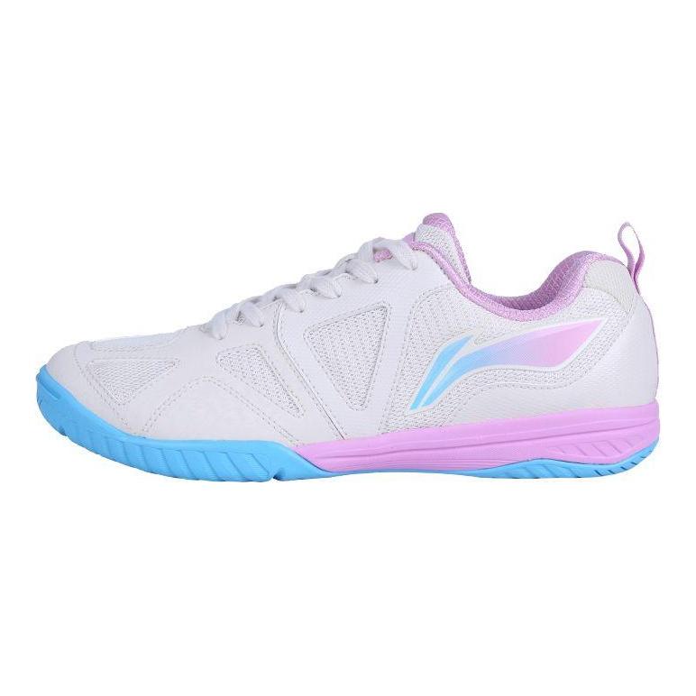 Li Ning Tissu Cuir Synthétique Absorption des Chocs Antidérapant Résistant à l'Usure Chaussures d'Entraînement Basses Baskets Unisexe Blanc Bleu APTT007-1
