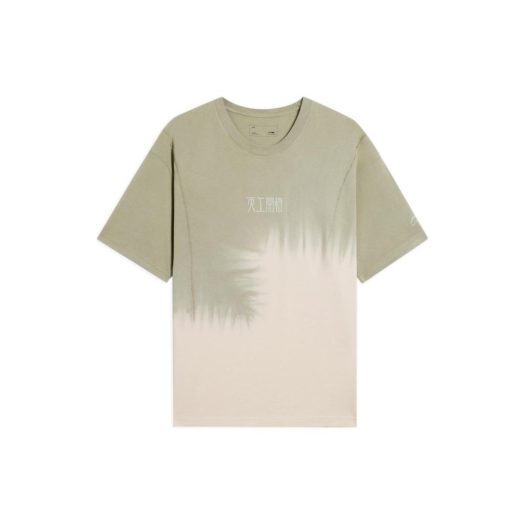 Li-Ning T-shirt Unisexe à Manches Courtes et Col Rond Brodé avec Blocs de Couleurs en Dégradé Vert Désert AHSS355-1