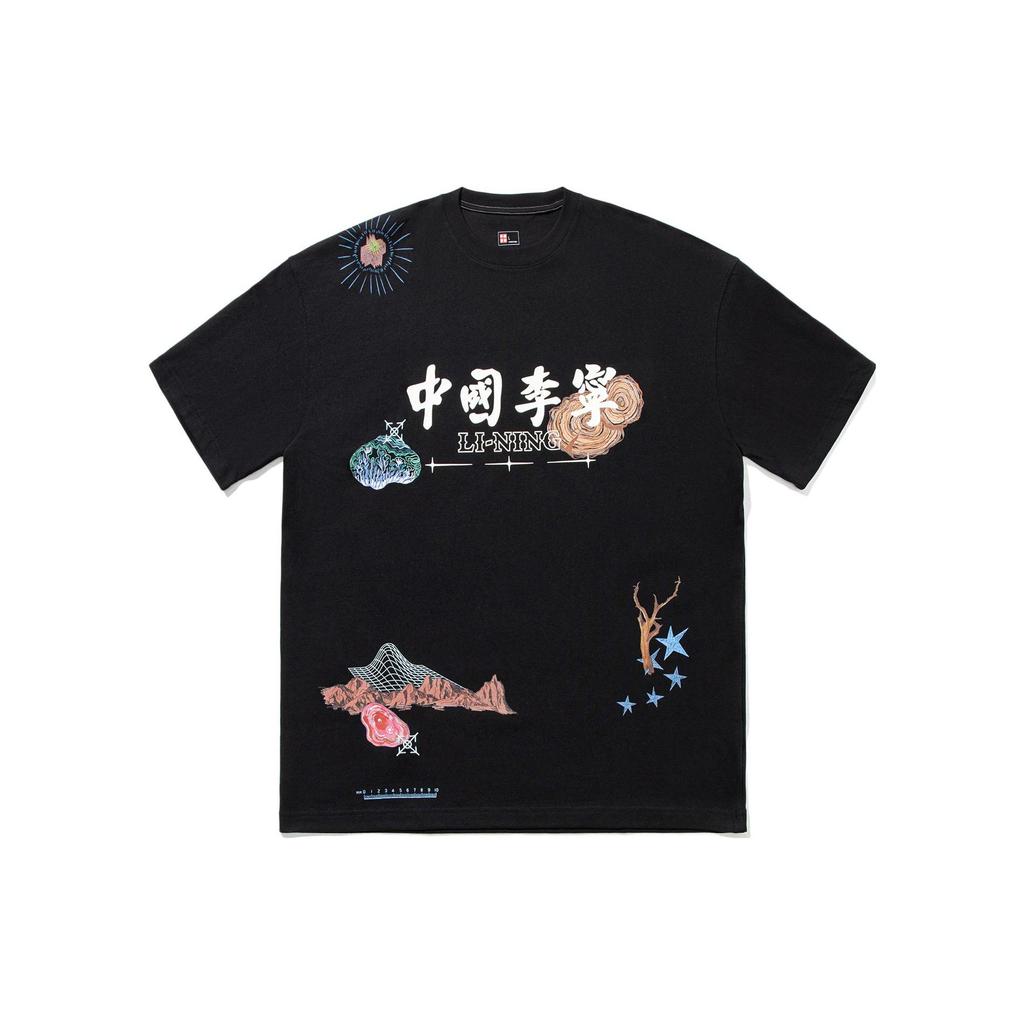 Li Ning 2024 Printemps Été Série Vente Immédiate T-shirt Culturel Ample à Manches Courtes Homme T-shirts Noir AHSTA01-3