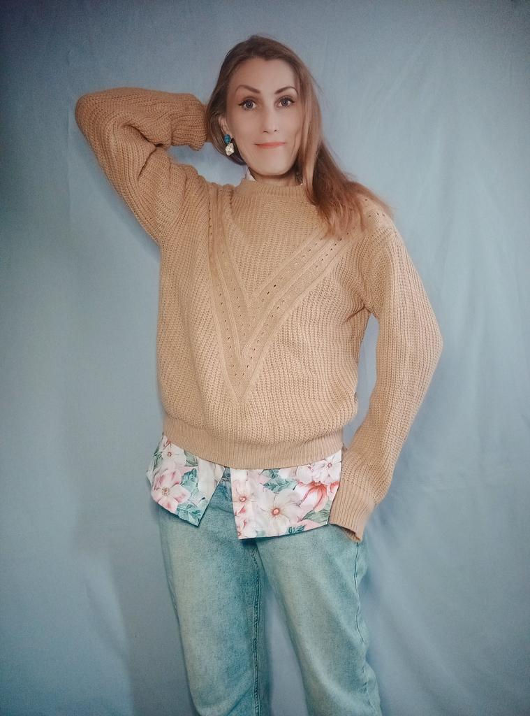 Pull pour femme. Quand on veut créer une image non seulement confortable, mais aussi belle, choisissez des pulls tricotés tendance avec des motifs ajourés - avec leur aide, vos tenues auront un nouveau look! Différentes couleurs au choix. J'ai choisi la taille S. Sur mes paramètres: OG -85 cm À PARTIR DE -69 cm Taille 165 cm Approché parfaitement. Je recommande vraiment.