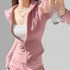 T-shirt d'entraînement court à manches longues et fermeture éclair pour femme, coupe ajustée, fermeture éclair complète, pour course à pied, gym, pour femme