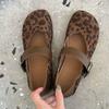Mode 2024 Ballerines en Cuir Imprimé Léopard Femmes Chaussures Mary Janes Neuf Tendance Croisé Bouclé Loisirs Confortable Ballerines