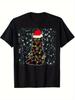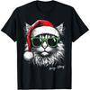 T-shirt Imprimé Chat de Noël avec Chapeau de Père Noël Grandes Tailles S-3XL Hauts pour Homme Vêtements T-shirts Mode