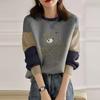 ZANZEA Sweat-shirt à manches longues et col rond pour femme, imprimé ours, couleur contrastée, automne