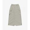 The Fila Women's FSI Cargo Skirt FS2SKG2171F-PALE GREY is made from a stretchy blend of nylon and polyurethane, providing a comfortable fit. It features a slightly flared mermaid fit design that enhances a feminine silhouette, and its cargo style offers practicality alongside style. The color is pale grey (PALE GREY), making it easy to match with various tops.