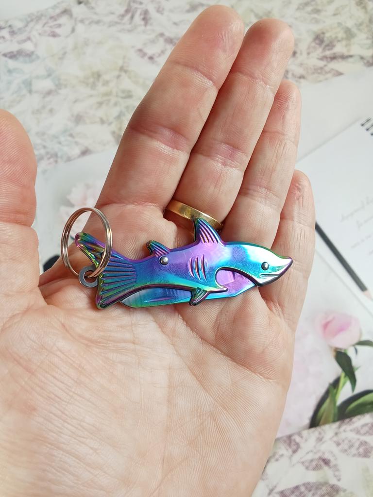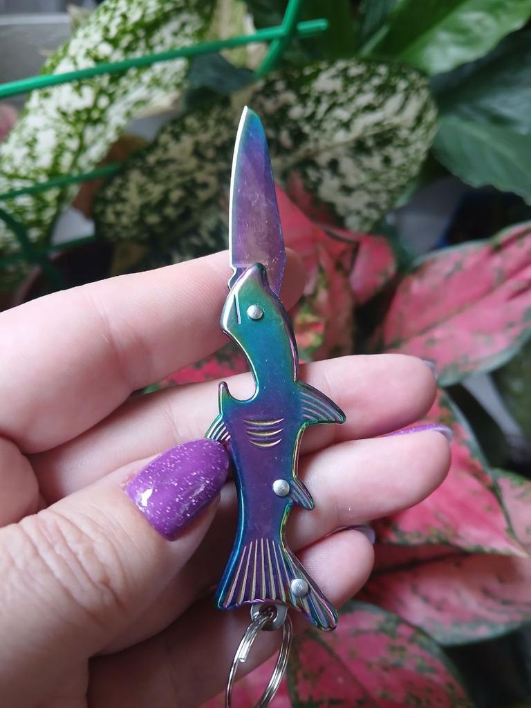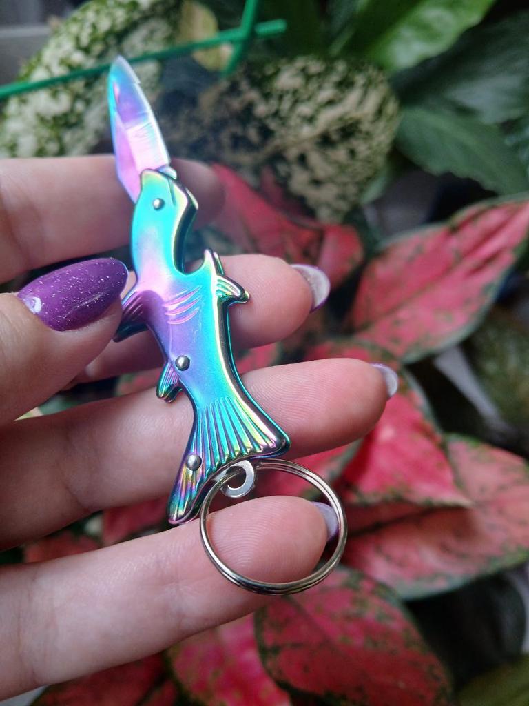 🔪Petit couteau mignon 🔪Avec décapsuleur 🔪Design mignon en forme de requin et couleur cool 🔪Qualité stable 🔪 Lame assez émoussée - doit être réaffûtée 🔪Recommandé pour chaque porte-clés 👍