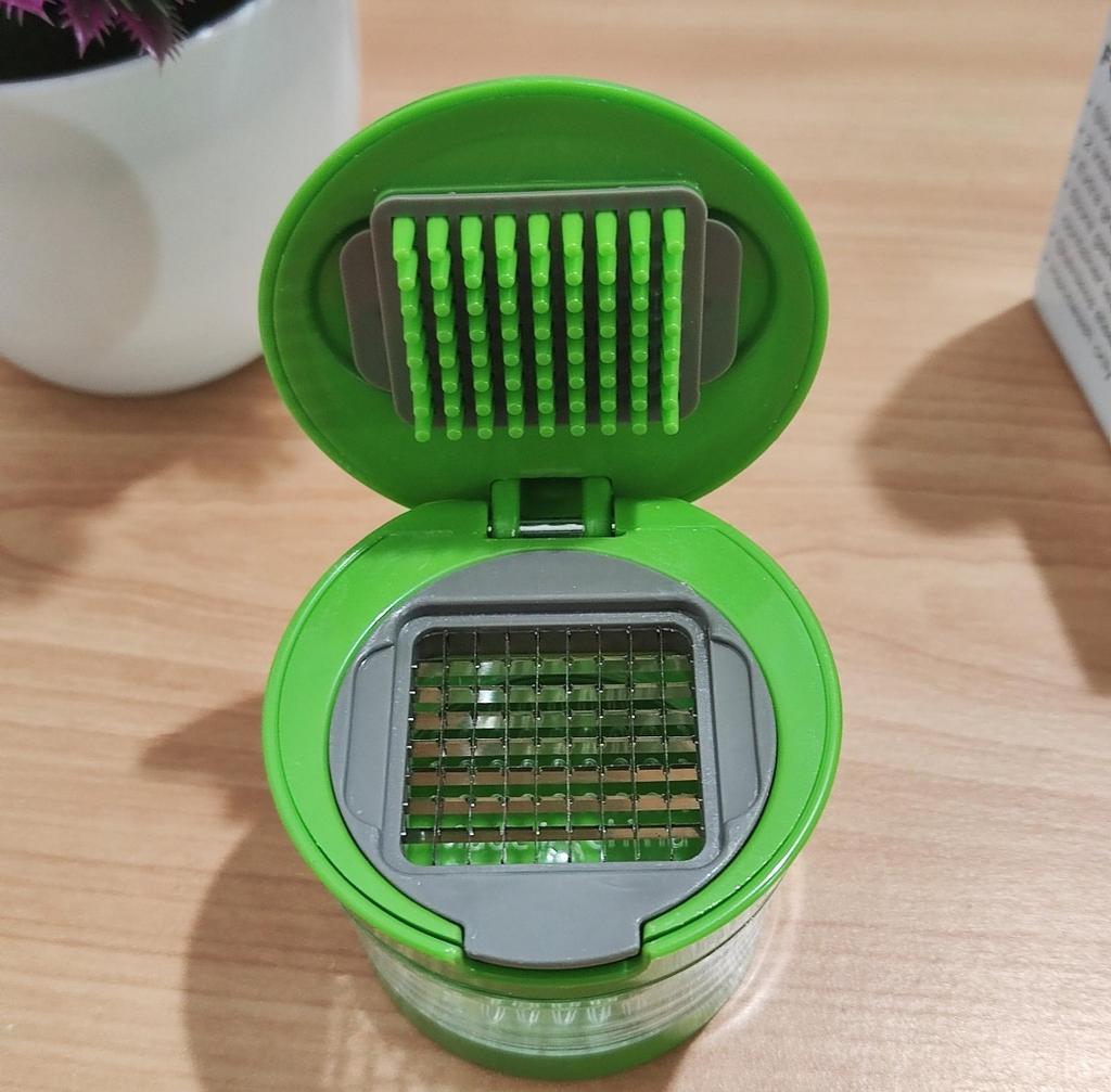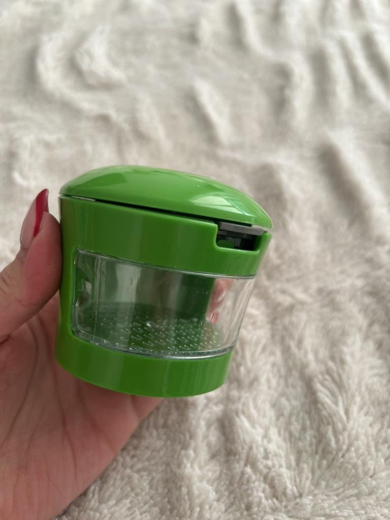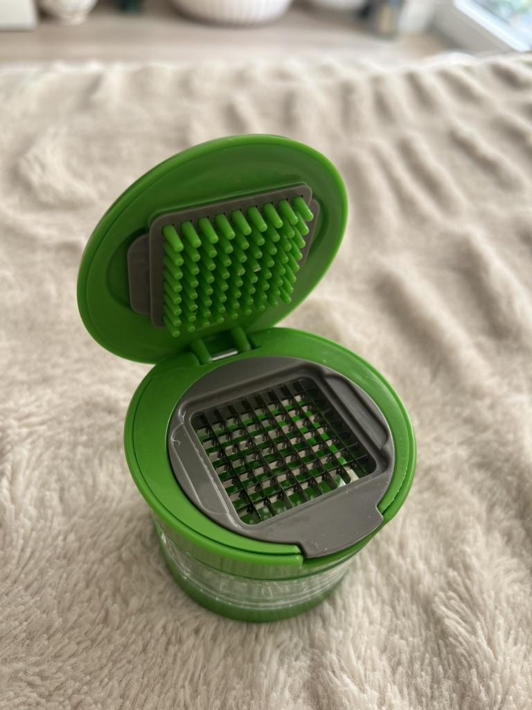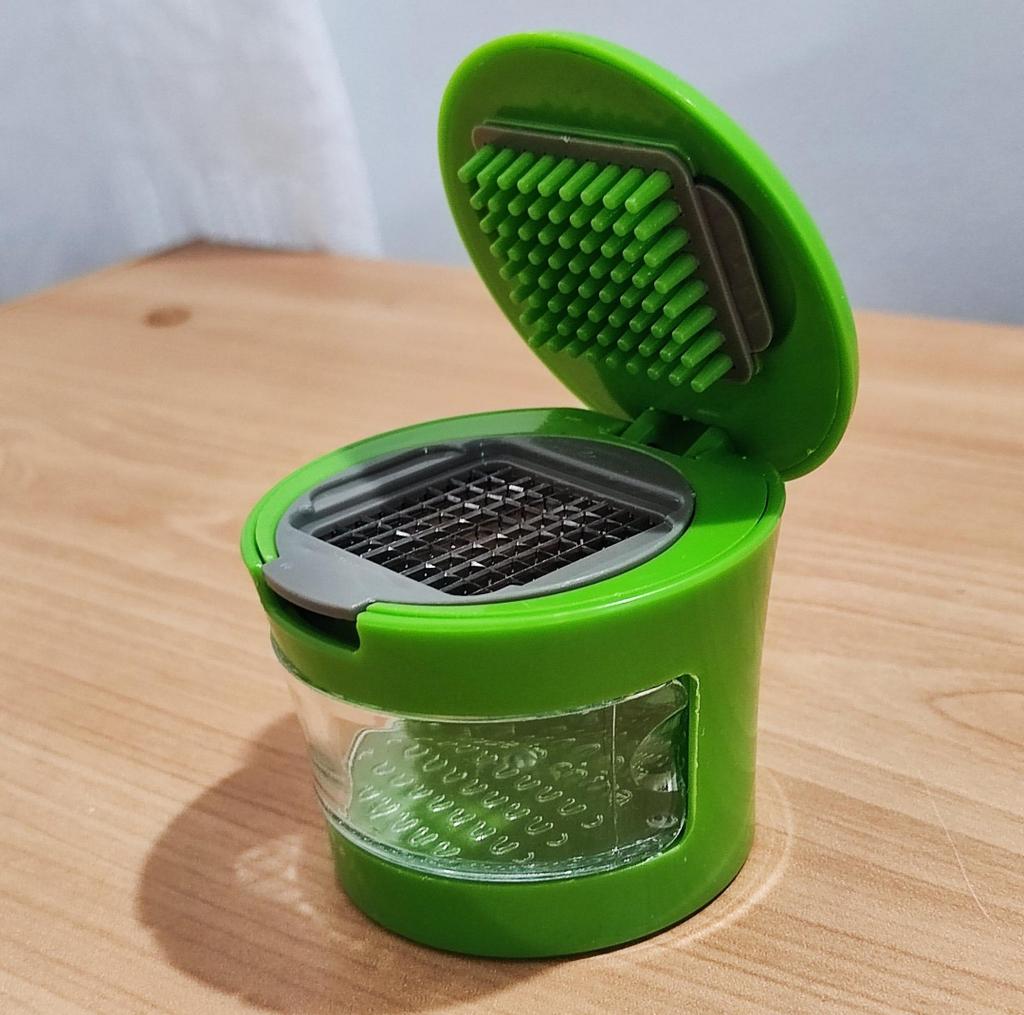 Presse manuelle pour l'ail et le gingembre J'ai acheté cet outil principalement pour l'ail, et j'ai découvert que c'est une petite solution efficace qui facilite beaucoup le travail en cuisine.! *Compact mais puissant* L'outil est petit et léger, mais ses lames sont très tranchantes et font le travail sans effort. L'acier inoxydable est de qualité et ne rouille pas même après plusieurs lavages.. *Utilisations variées* En plus de l'ail, j'ai aussi essayé d'y moudre du gingembre – et ça marche super bien. Il convient également pour de petites quantités d'autres épices.. *Facile à nettoyer* Il suffit de rincer sous le robinet, et il n'y a pas de petites pièces qui s'emmêlent ou se cassent. C'est vraiment pratique pour l'entretien. *Respectueux de l'environnement* Pas besoin d'électricité ni de piles – juste de la force manuelle. Écologique, pratique et silencieux. *En résumé* Si vous cherchez un outil simple, fiable et tranchant qui aidera à hacher rapidement l'ail ou le gingembre – c'est un petit outil qui fait un grand changement. Recommandé !