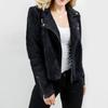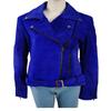 Veste de motard décontractée en cuir d'agneau et daim souple pour femme, couleur bleu marine, faite à la main, élégante