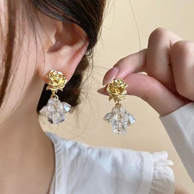 Boucles d'oreilles coréennes élégantes en cristal pour femmes, design léger et luxueux, de niche, haut de gamme