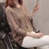 Hooded Sweater with Buttons on The Back for Women Stylish Slimming Knitted Sweater with Solid Color Base
