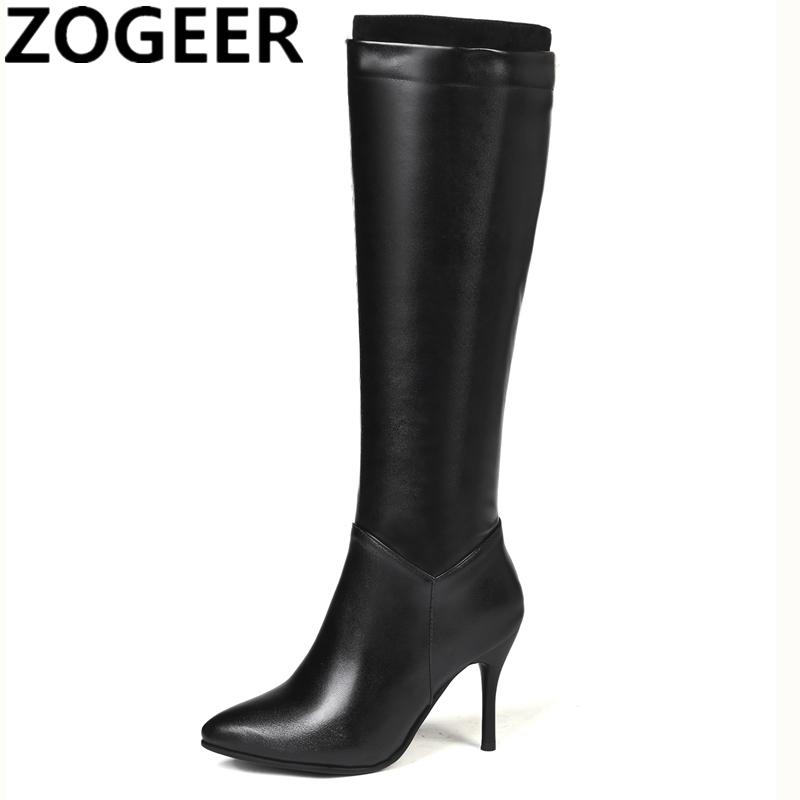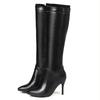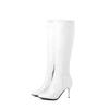 Bottes Hautes Classiques Automne Hiver Mode Femme Talons Hauts Botte Femme Cuir PU Noir Blanc Fermeture Éclair Chaussures Longues Grande Taille 45