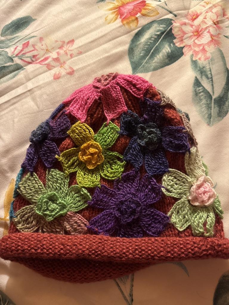 Le bonnet est original, mais la couleur ne correspond pas à l'image, les fleurs sont de couleurs plus vives. J'ai mis 5 étoiles car il conviendra pour les promenades à la campagne. Sur l'image, le bonnet a l'air plus intéressant.
