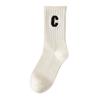 6 Paires de Chaussettes de Sport Lettre C Grande, Couleur Chaude Polyvalente Étudiant Couleur Unie Style Collège