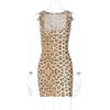Robe moulante sans manches à imprimé léopard et col carré en dentelle, style sexy et tendance, pour femme
