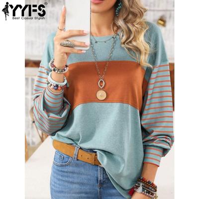 YYFS Chemisiers et chemises décontractés à manches longues et col rond pour femmes, imprimés blocs de couleurs, printemps-automne