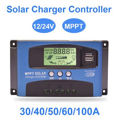 Contrôleur de charge solaire MPPT 30/40/50/60/100A Double écran LCD USB 12V/24V Régulateur de chargeur de panneau de cellules solaires automatique avec charge