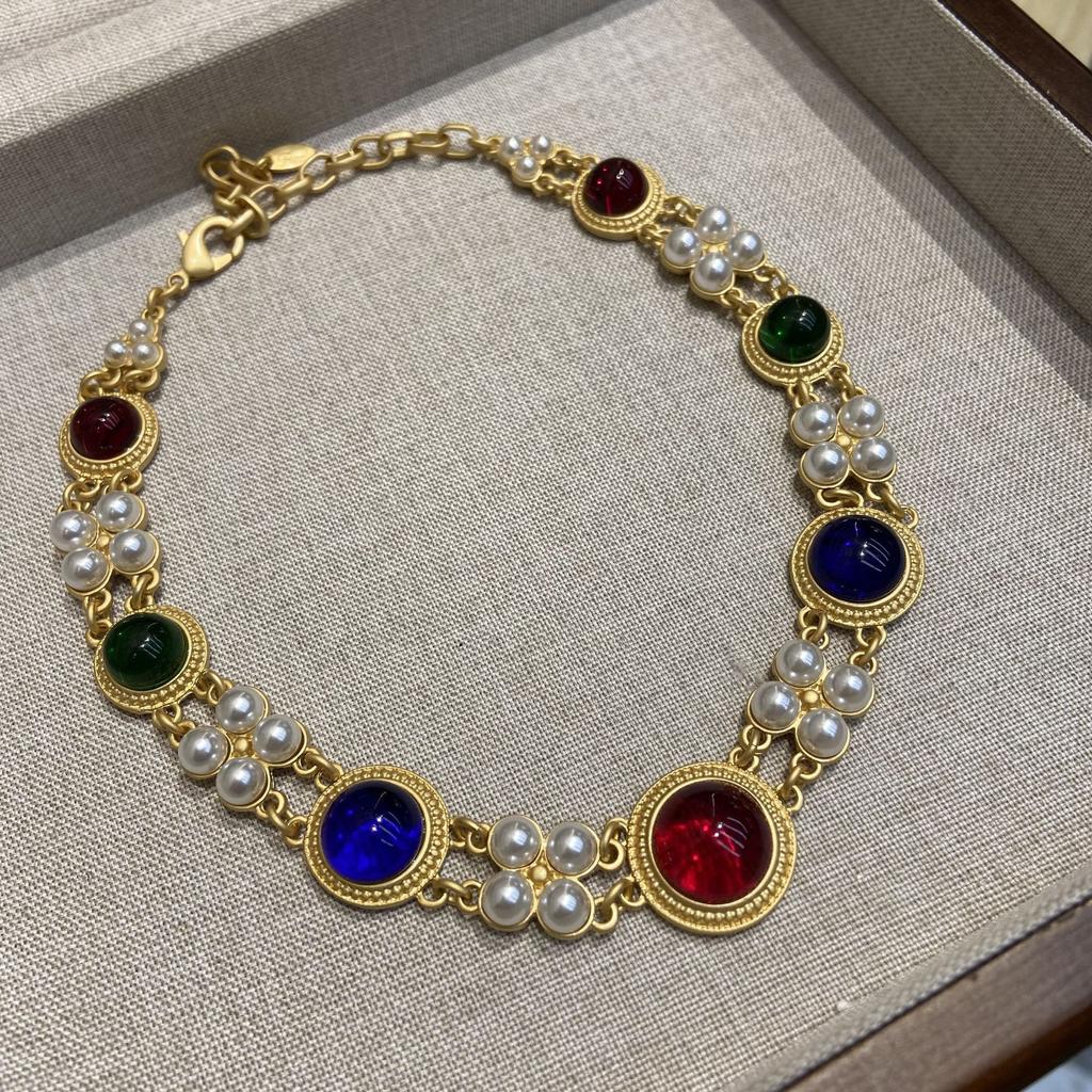 Collier médiéval en perles émaillées rondes colorées, chaîne à double clavicule, collier de style cour vintage