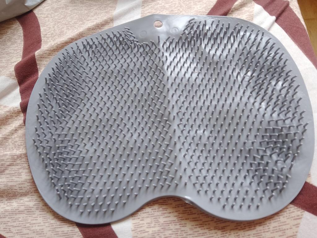 Plus petit que ce à quoi je m'attendais. Mais pour cet argent - c'est normal. Avec des ventouses à l'intérieur. Très doux. J'aime. Nettoie bien les plantes de pieds.