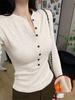 T-shirt à manches longues en coton fin fileté pour femmes, automne et hiver, top à boutons, polyvalent, vêtement intérieur amincissant, vêtements d'automne amincissants