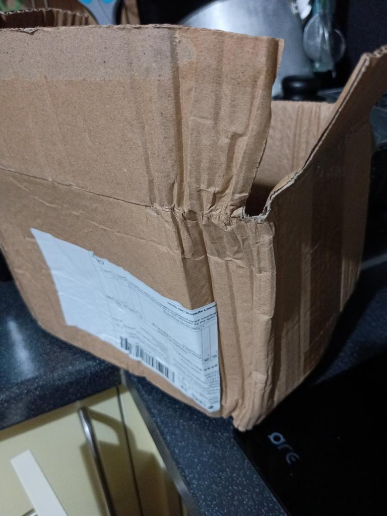 Le couvercle a éclaté et le mécanisme du robinet est cassé. La boîte est toute cabossée.