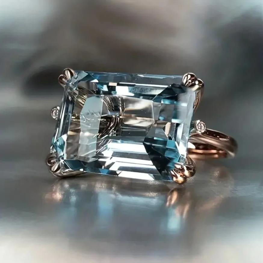 Bague tendance en strass bleu pour femme, accessoire de fête, bijou pendant