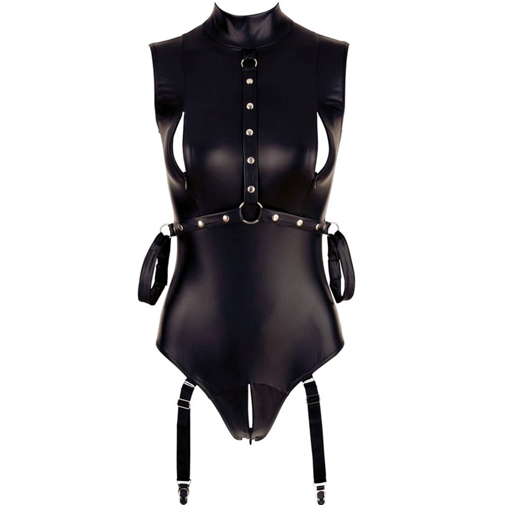 Ensemble de lingerie sexy 2 pièces, justaucorps taille haute, bas, similicuir, 3 fermetures éclair, jarretelles incluses, fermeture éclair au dos, costume de bondage, design séduisant, cosplay