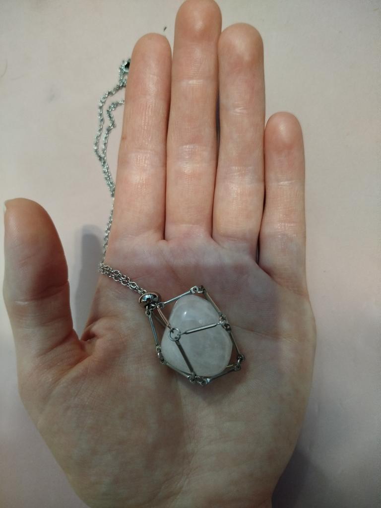 Le produit lui-même est assez grand pour le cou, cependant le minéral est naturel, très beau. Les minéraux légèrement plus petits tombent simplement à travers les fentes donc dans mon cas je ne le porterai pas au cou
